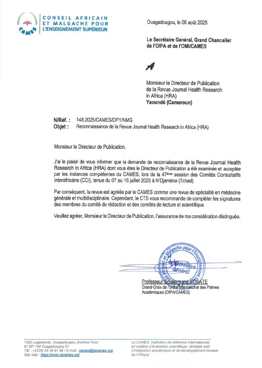 La Revue Health Research in Africa est accréditée par le CAMES depuis Juillet 2025